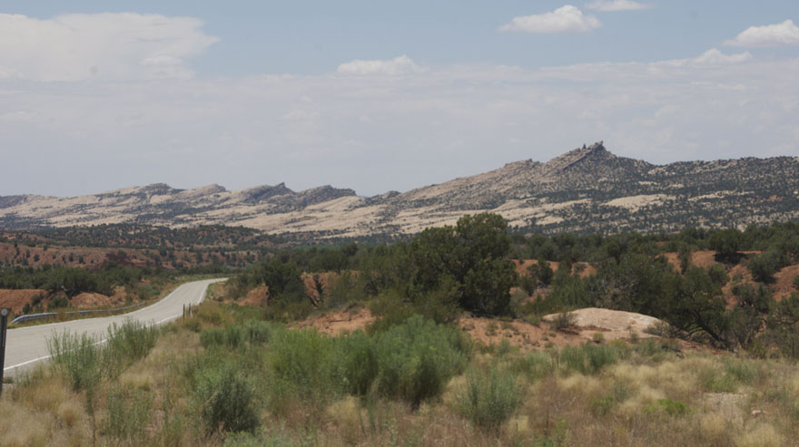 The road here cuts through the ridge-top shown above and then runs along the edge of Comb Wash, where the image below was taken: