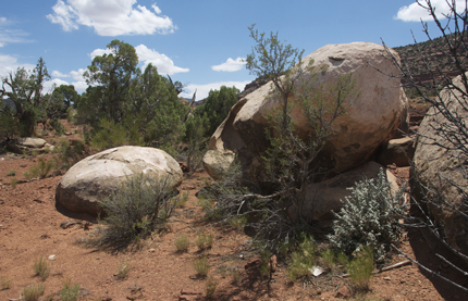 Below the Wingate (and now mostly buried under the more recent sediments of Comb Wash, which runs south into the San Juan River west of the town of Bluff, UT) lies the Late Triassic Chinle Formation, which we considered in detail in our March 2010 Petrified Forest Tour. We will see the Chinle again when we visit the Circle Cliffs Upwarp, prime generator of Capitol Reef itself.
