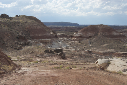 Thus we entered what seemed to me an eerily familiar world, reminding me of the Chinle Formation we saw so much of during our July 2010 Painted Desert tour, though the two formations formed more than 50 million years apart. Click on each image below to enlarge it.