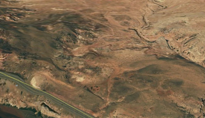 We however were distracted in our arrival at Hanksville, seen below thanks to Google Earth: Click on the image to enlarge it.