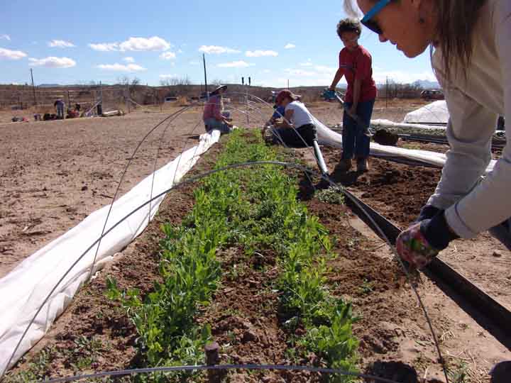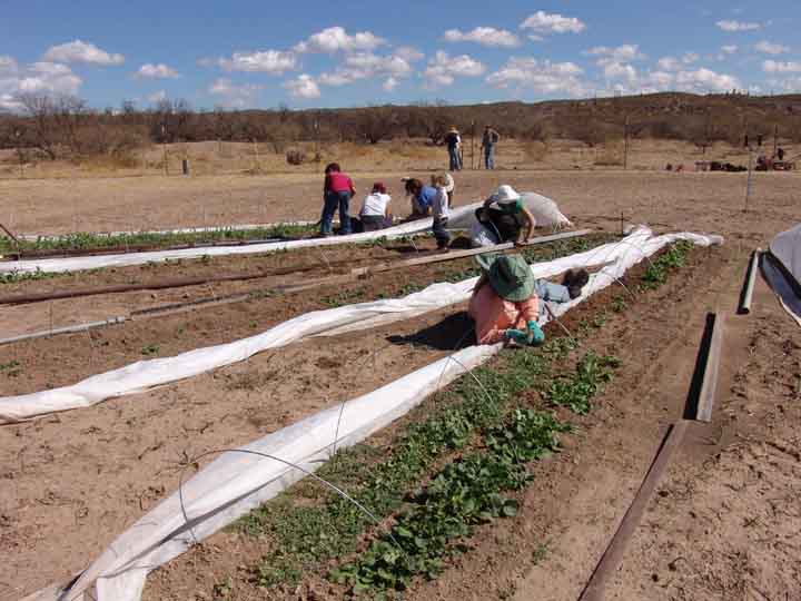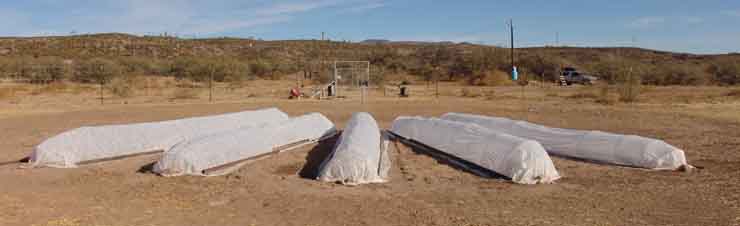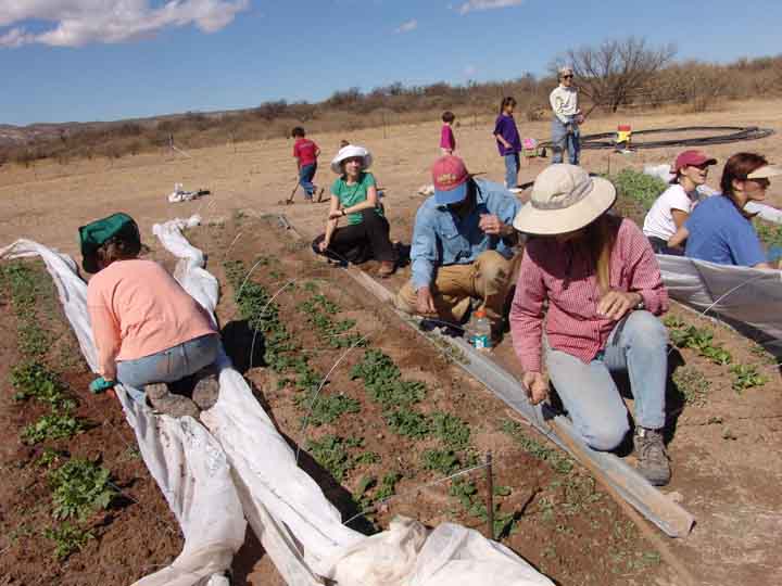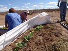 October 12, 2011: Hi Cascabel Community Gardeners, Friday, Oct. 14, 7AM we'll meet at the Mesa garden and check if there are any watermelon or peppers to harvest and then go down to Erik's. We'll be planting again in the community garden at Erik's. Last week thanks to Miller who smoothed out the high spots in the road with his Kubota starting at Hot Springs Wash to Erik's garden. Then Bob drove us to the garden. There we planted and put on row covers for the cooler weather garden. See you in the garden. Gail