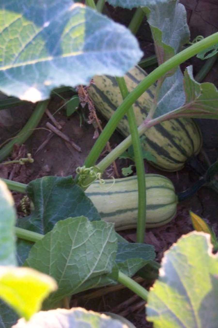 Also be sure to identify Devil's claw. Like all devils it disguises itself as something one might want! Someone has carefully weeded around several healthy looking plants in the cuke patch above the delicato squash. It has a more tan/purple shaded leaf than the squashes and other plants. There is a lot of it and it needs to be banished!