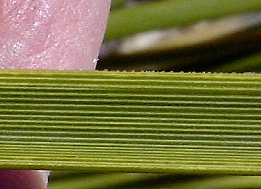 Beargrass is not a grass at all: like Sotol, it has sharp teeth along the edges of its leaves --but in this case, the teeth are very fine, almost microscopic), and like Sotol, Yuccas, and the Agaves, its leaf bases clasp its stem in densely overlapping spirals that produce leaf-rosettes. As Janice Bowers (cited above, p. 39) says, Beargrass rosettes "make dense, fountainlike clumps on hillsides and canyon slopes at the upper margin of the desert".