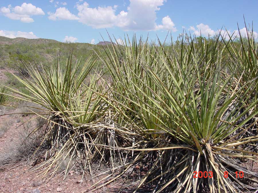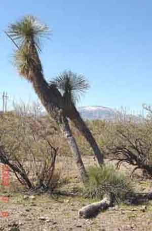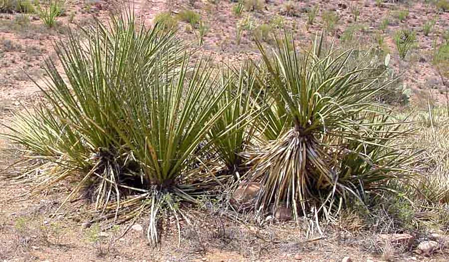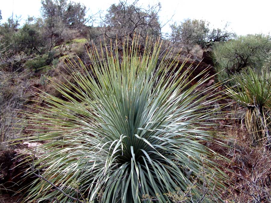 From a distance young Y. elata look like Sotol plants (see further below), but their leaves lack the sawtooth edges (below right).