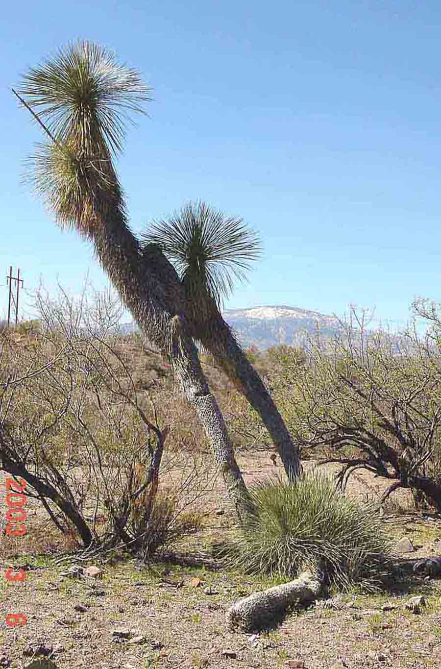 We have seen a few Y. elata in our uplands mainly near Saguaro-Juniper Hill, and they are also present in the Red Tank Wash among the Junipers there, but they are more common in the lower sandy washes of the Soza Mesa drainage near the elevation of the San Pedro River floodplain -- see the image at left for a pair of very old ones observed there. (Click on the image to enlarge it).