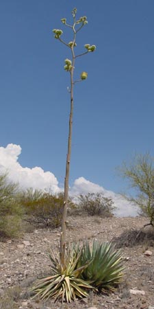 This Agave, common in foothills of 3,300 to 4,000 feet in our area, lives in an area extending from the Baboquivari Mountains in the west to New Mexico in the east, and from the Gila River in the north into the Sierra Madre Occidental to the south.