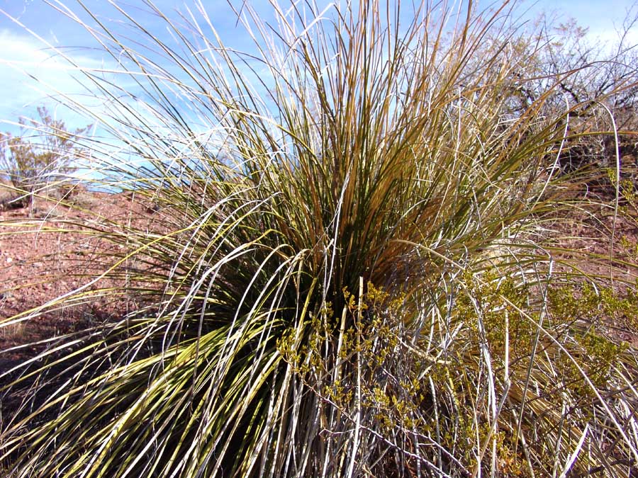 Also called "Desert Spoon", although long classified as a member of the Agave family, this plant looks from a distance rather like Yucca elata (see essay on the latter above), until one examines the leaves at close range --