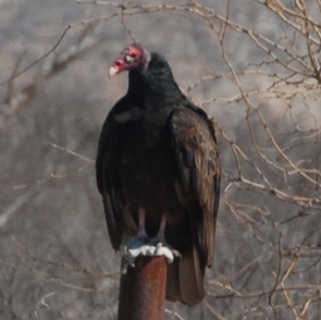 Turkey Vultures often guard our Saguaro Juniper gateways (see the trio of sentinels, standing firm against intruders, below right).