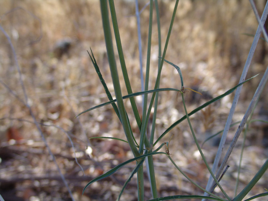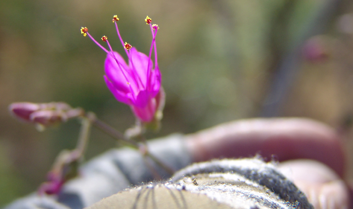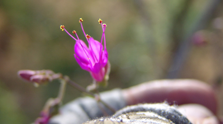 Daniel Baker saw this unusual flower in Hot Springs Canyon on 14 May, 2005, and asked us to photograph it. We did so but then forgot about it. (Click on each image to enlarge.)