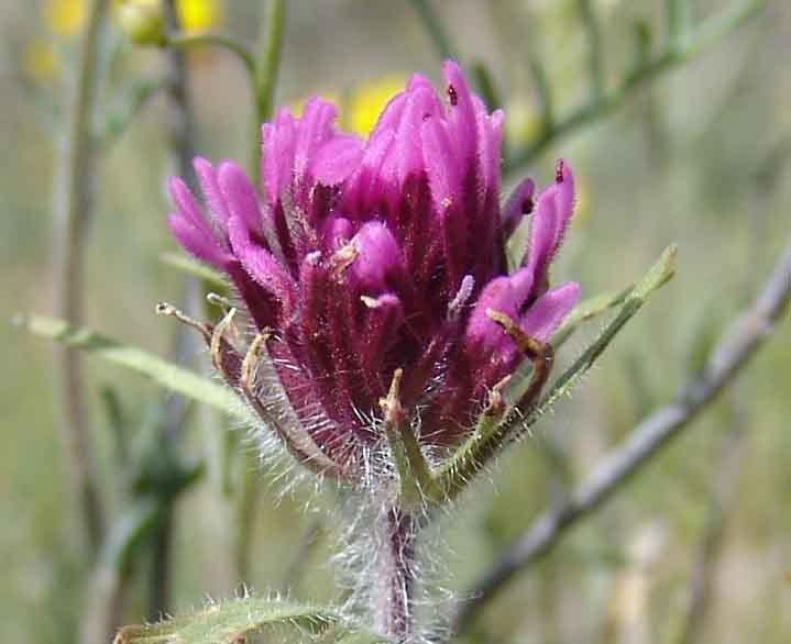 These flowers and their bracts are "dark red-purple", their "leaves threadlike, with threadlike segments" (Niehaus et al., cited on main wildflower page, p.244; Epple, ditto, p.230). As the images show, the flowers stand very erect.