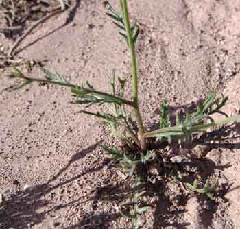 The images above were taken in lower Hot Springs Canyon on March 06, 2008. Here the petals look whitish but with a faint purplish tinge. The characteristically reddish-brown stems are most evident in the enlargement of the image at right. Note also the bristle-tipped, wooly heads (Epple p. 199). Click on images to enlarge.