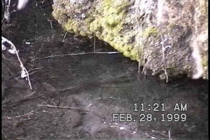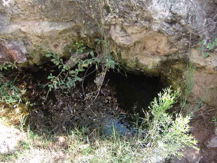 Below, the heart of Sierra Blanca Spring, the pool, which is overhung by a lower lip of calcite rocks and calcium carbonate ("caliche") deposits. The image at left was taken in February of 1999, that in the middle and on the right, in July 2004. (Click on each image to enlarge it.) You can see the drip rings in the left-hand image, while the other two show the rocks more clearly.