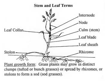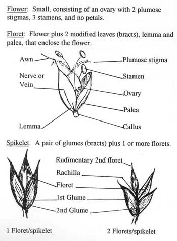 To provide a basis for describing our grasses, we follow the terminology and imagery provided by the USDA (cited above) -- though we will avoid specialist terms as much as possible: