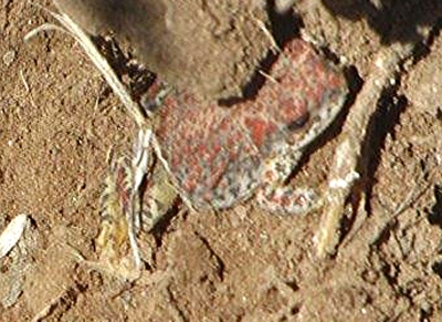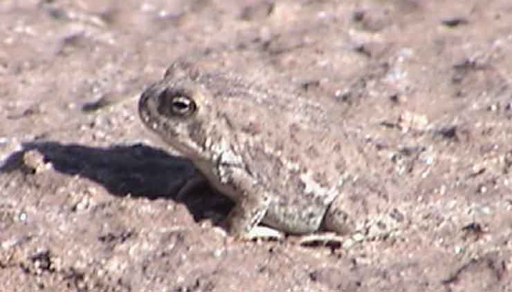 Naturalist Woody Hume uncovered this small toad while digging in the Mason pasture located along the San Pedro River Valley near Milepost 18. This creature is found in most parts of Arizona, being adapted to environments from our hottest and driest to some of our coldest forests (though it usually resides near permanent or frequent sources of water, breeding in such locations from the Grand Canyon to our local cattle tanks).
