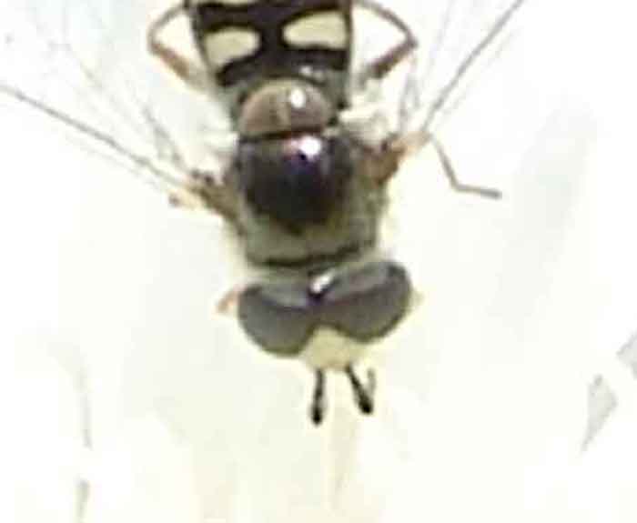 Note also the reddish coloring of part of the fly's legs, not visible in the other photographs.