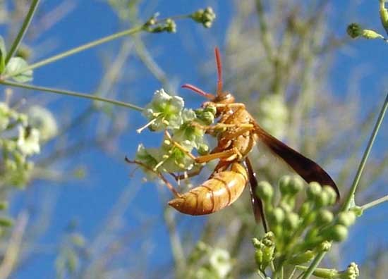 Below, another view of this species of wasp, enjoying a flowering annual in August 2004: