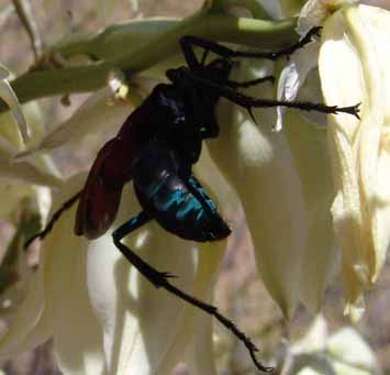 Adults are nectar feeders, the one below shown favoring Yucca elata blossoms.