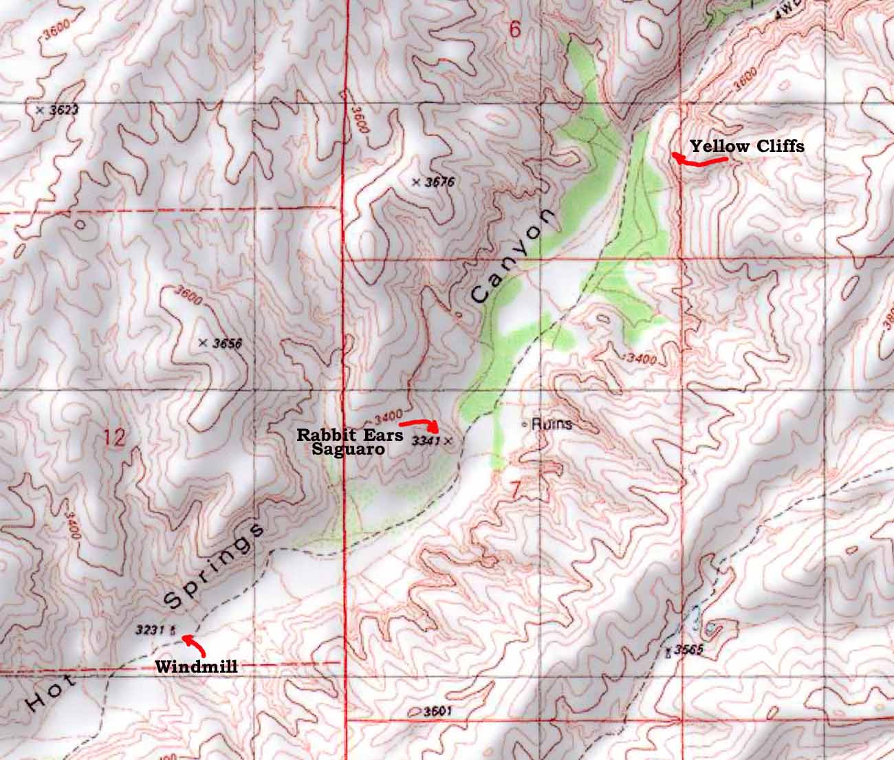 Map: the Windmill to the Yellow Cliffs. Click on the image to enlarge it.