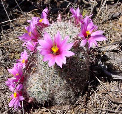Image at left: pincushion mammilaria blossoms in Hot Springs Canyon, July 2003