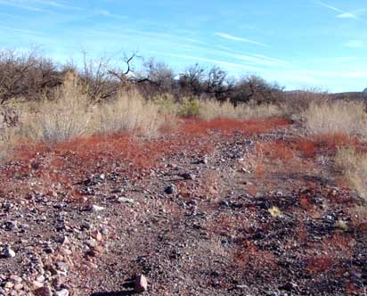 Image at left: Skeleton Weed annuals die out to a brittle bright red in Teran Wash, December 2003.