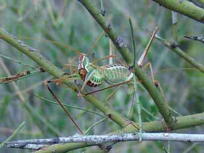 Image at left: one of a rich crop of grasshoppers in lower Hot Springs Canyon, October 2007.