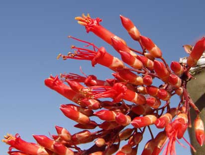 Image at left: Ocotillo blossoms on hills above the San Pedro River, April 2005.