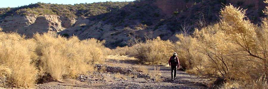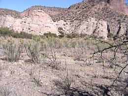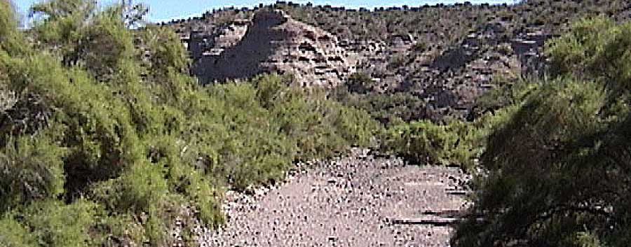 In Hot Springs Canyon, a major flood in January 1993 scoured a large, central portion of the floodplain, and since that time we have been able to document the subsequent re-vegetation process. The following images and text document the changes: (click on each image to enlarge it)