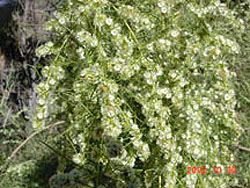 At left, Hymenoclea in full flower near the Windmill, late October 2002. These flowers are quite sweetly fragrant and draw lots of bees.