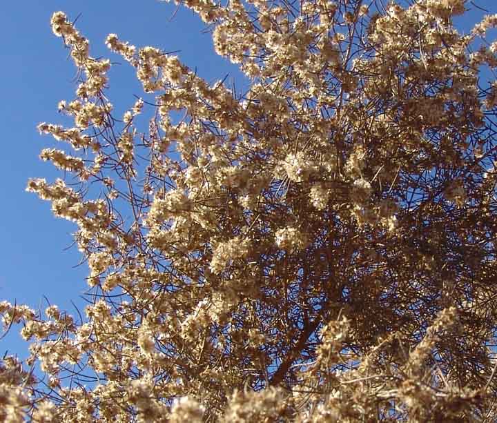 In January 2006, hymenoclea flowers had dried out during the winter drought, looking like this (at right):