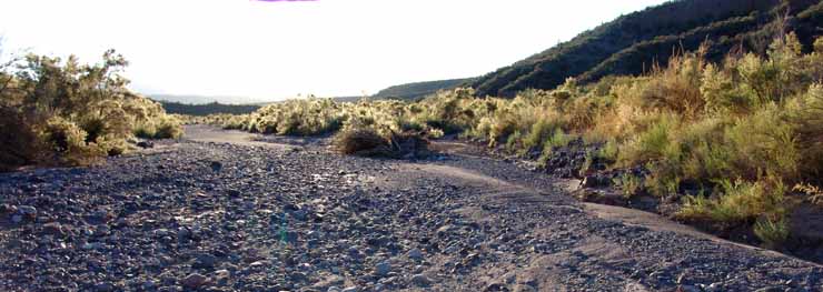 Below, two views of a Hymenoclea riparian gallery at about the same location in Lower Hot Springs Canyon, the first taken in September 2002 and the second in January 2003.
