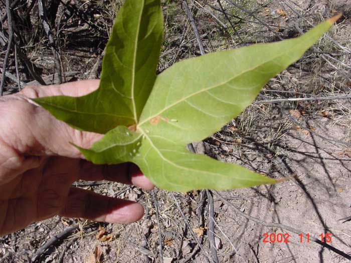 These are large floodplain and lowland trees "with distinctive light green, whitish, or mottled bark that flakes off in irregular puzzlelike pieces, exposing yellowish and whitish underbark" (Petrides p. 165). Our Arizona species (or variety?) is the tallest tree of our lands (reaching some 80 feet high), has bark that looks very whitish at a distance (see banner photo, above), and its leaves tend to hang on it long after they have dried to a golden brown (the banner photo was taken in November of 2002)