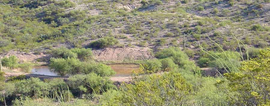 We're sad about the loss of water, since the area around this tank is good grazing land and presence of water attracts many varieties of wildlife. Clearly we confront a land of very unpredictable rainfall (see Weather link) and endlessly dynamic erosion, and we are learning to temper our optimisms concerning the effectiveness of our work with the recognition that our efforts are in the long run limited and perhaps ephemeral here.