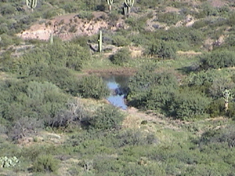 The drought broke in August 2004, and the main tank filled fairly full again. Here is a view of the much smaller, Secondary Tank from that month: (Click on the image to enlarge it.)