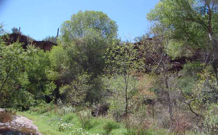 The riparian trees to be found on the bottomlands of the San Pedro River and its tributaries, where groundwater is sufficiently close to the surface to support them, are members of genera having their ancient affiliations toward Eurasia -- ash, alder, cottonwood, hackberry, mulberry, sycamore, sumac, walnut, and willow. In contrast, the vegetation types found outside our valley floors mostly come from Mexico and the Sonoran Desert [Zimmerman p. D11].